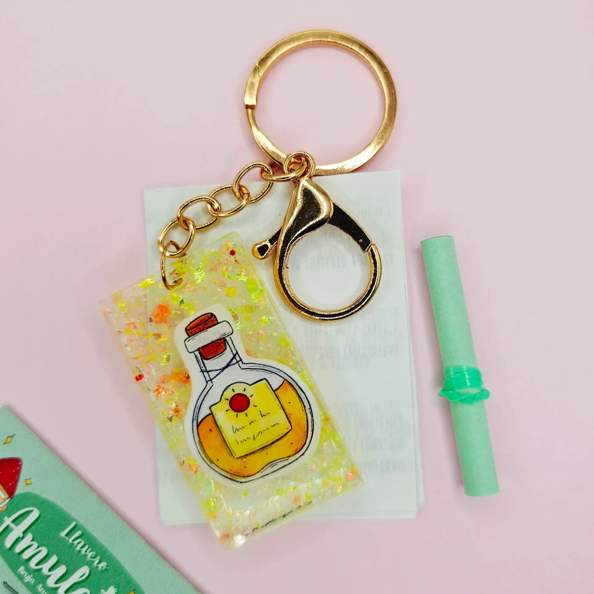 Captura un rayo de sol y llévalo siempre contigo. El Llavero Escencia Solar no es un simple adorno; es un amuleto embotellado que guarda el poder transformador de la luz, la esperanza y la renovación.