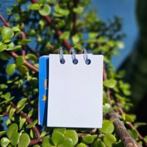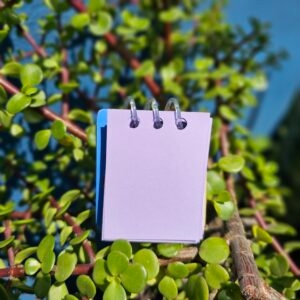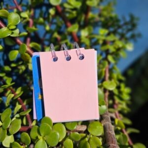 Mini Libreta de espiral plástico, con hojas combinadas: Fabriano morado, rosa y blanco.