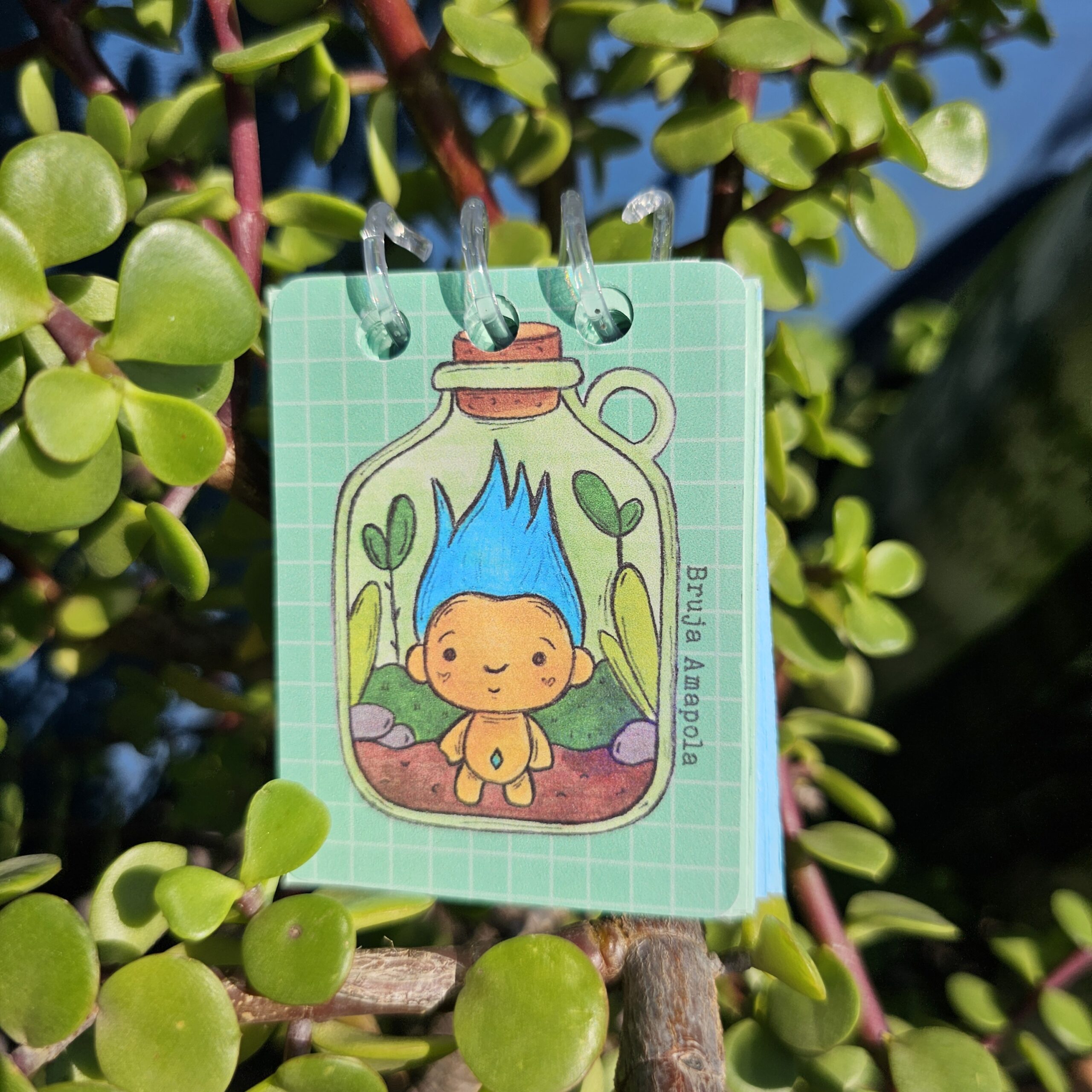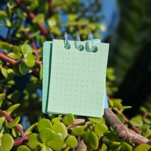 Mini Libreta de espiral plástico, con hojas combinadas: Fabriano Azul y Verde y Papel bond verde
